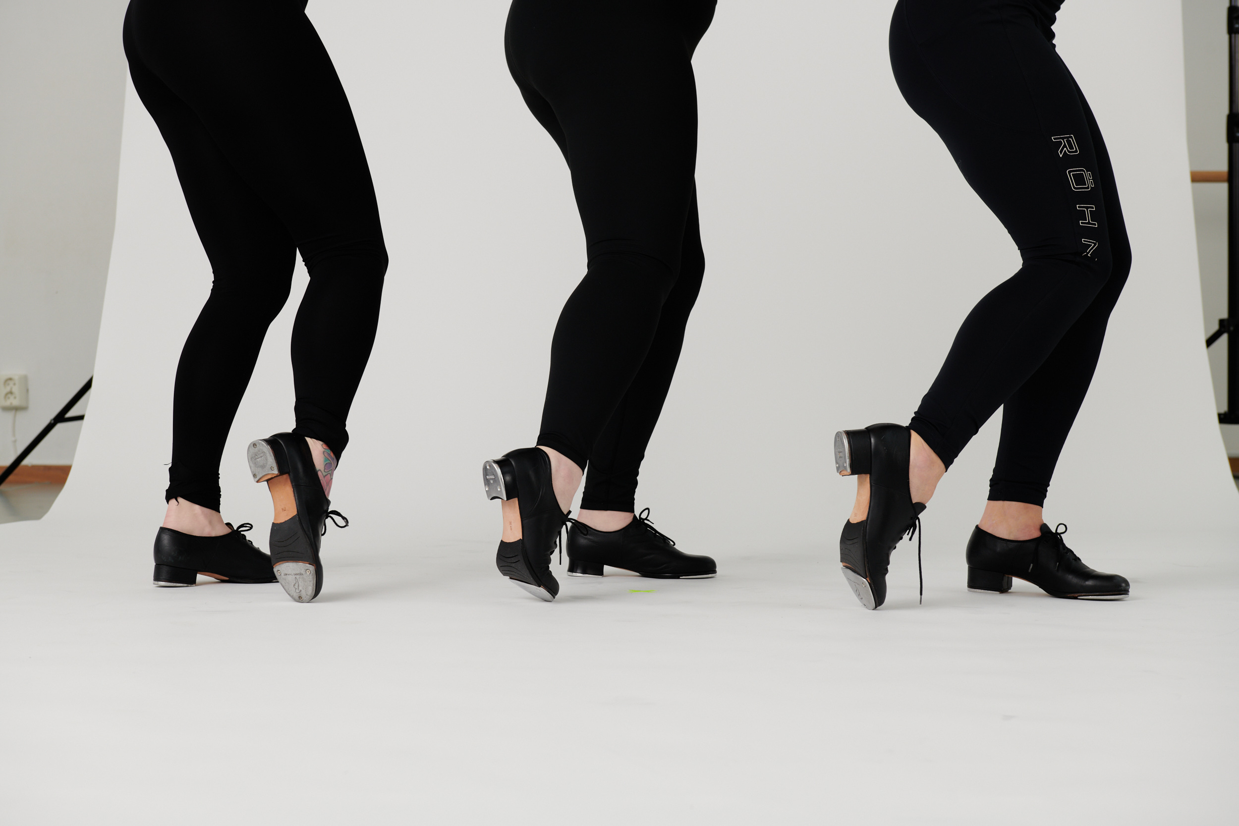 Steppskor är självklart roligast att dansa i men det går lika bra med skor som har en hård sula, typ sneakers/träningsskor. Så dra er inte för att komma och köra, tekniken är densamma vilka skor vi än jobbar i!