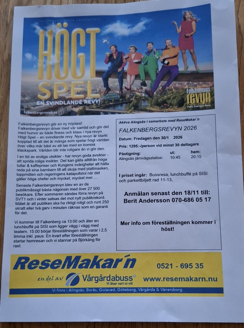 Aktiva Seniorer, Alingsås, i samarbete med ReseMakar'n